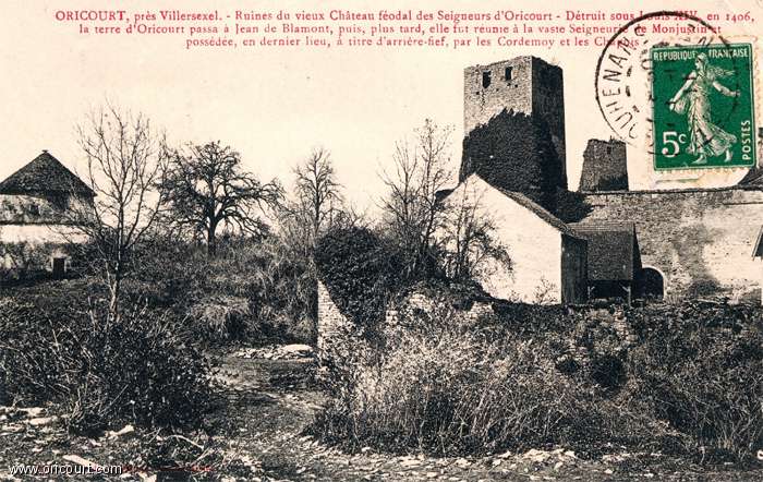 Un ancien dénombrement le décrit Compète et appartient auxd. Sieur et Dame les chasteau et maison forte d’Oricourt selon qu’il est construit, garnis de deux hautes tours, murailles, une tour servant de salle, bres, pont-levis, pont gisant et caves et autres édifices circuit et environné de fossés ensemble de ses adjacences y jointes... Proche le chasteau et en circuit d’iceluy est un colombier