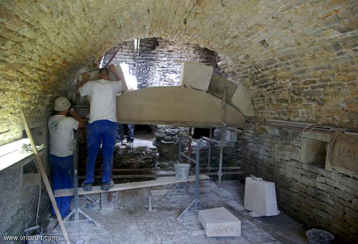 Au dessus des fours, une petite pièce voûtée, accessible depuis le pied de la tour, aurait pu être la salle des chartes. Bien tempéré, c’est l’endroit idéal pour conserver des archives, mais cette fonction n’est pas attestée à Oricourt.