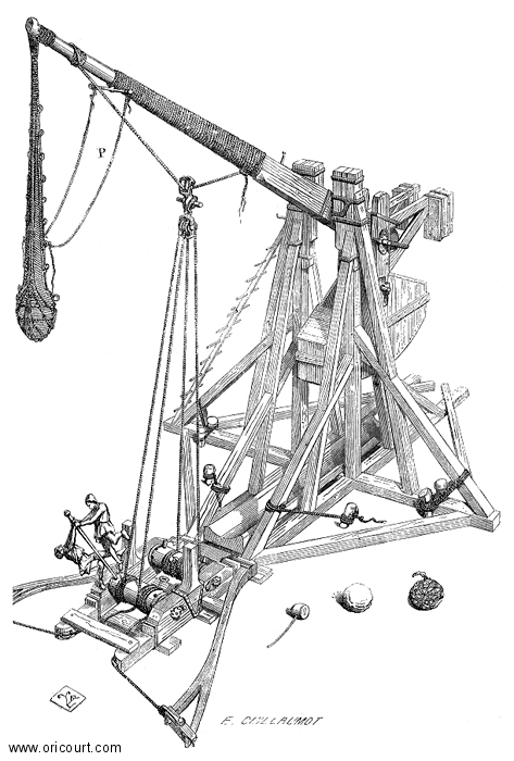En réalité, cet engin pouvait être 3 à 4 fois plus important, et pouvait envoyer des projectiles de plus de 100 kg à plus de 200 mètres.